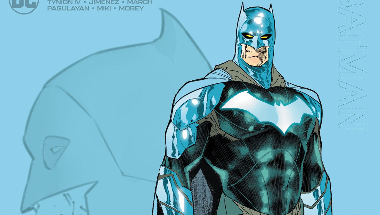 Upon the release of Batman #95 today, DC has unveiled a new suit for the Dark Knight. Previously teased in the artwork for the upcoming Batman #100, the new suit has a shroud of mystery behind it that will most likely be explored within future issues of the Joker War story arc. The aforementioned suit has a more bright, futuristic look, swapping the black and grey for a bright blue with a metallic sheen.